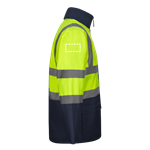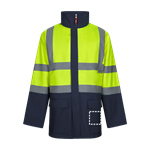 Parka 4 en 1 bicolore (180g/m²), en polyester (100%) avec finition PU. Quatre pièces en une : parka, imperméable, veste et gilet.Parka/ Imperméable : avec fermeture éclair centrale cachée avec patte de boutonnage qui se ferme par auto-agrippant, bandes réfléchissantes sur le torse, les épaules et les manches et capuche cachée , avec deux poches inférieures.Veste/gilet: avec fermeture éclair centrale, bandes réfléchissantes sur le torse et les épaules, poignets côtelés et manches amovibles. Trois poches (2 poches inférieures et 1 poche intérieure). Produit conforme au règlement (UE) 2016/425, certifié par EN20471 et classe Nº 2. Taille: S, M, L, XL, 2XL, 3XL