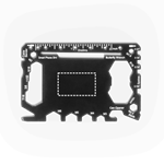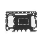 Carte multifonction en acier inoxydable. Comprend 20 fonctions: décapsuleur, tournevis de différentes tailles, clés hexagonales de différentes tailles, cutter, coupe-papier, dégrafeuse, couteau et règle. Fourni dans un sac en PU. 80 x 53 mm | Sac : 93 x 65 mm