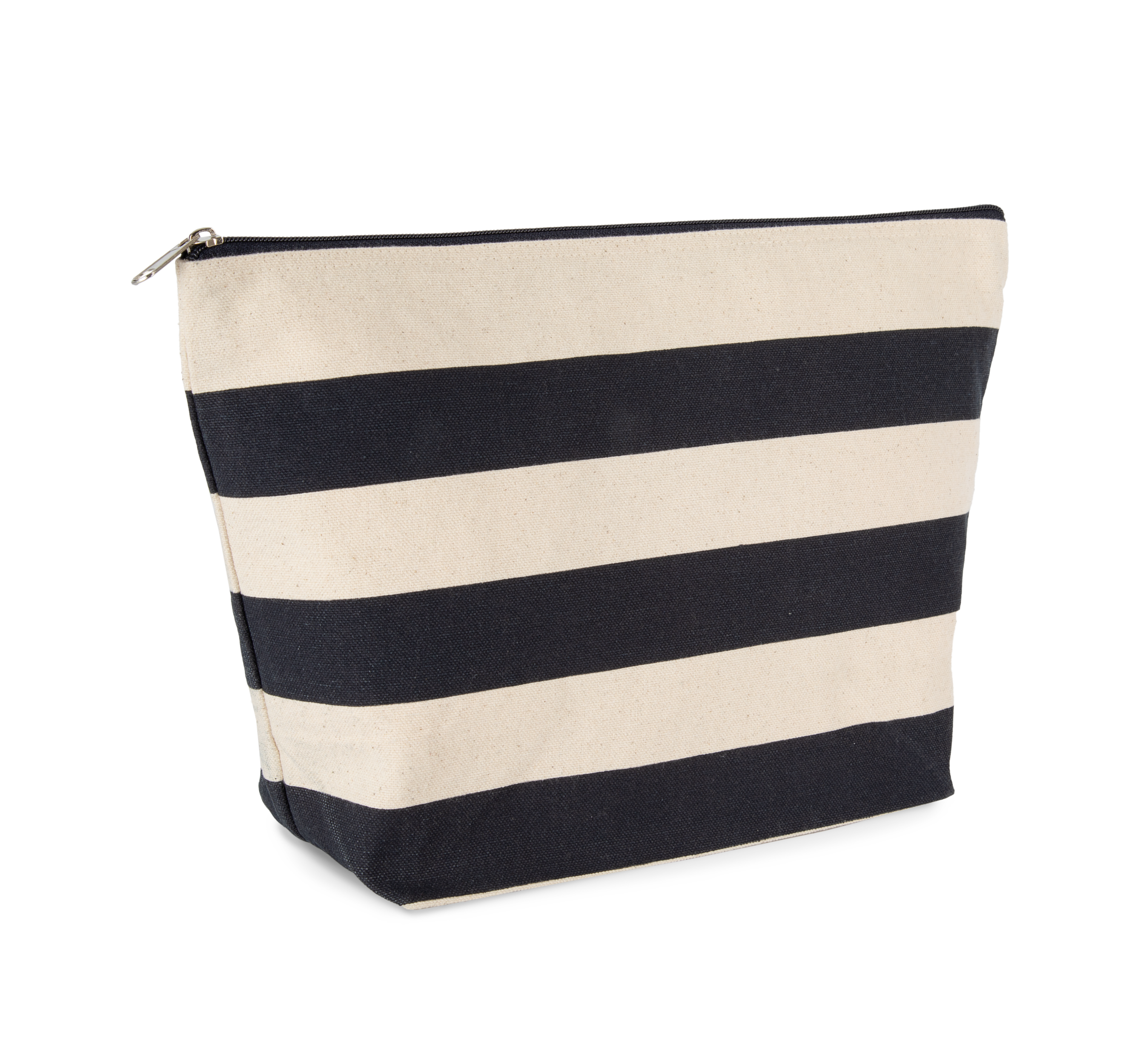 100% coton. Pochette extra large au look marinière, avec fond large et fermeture zippée. Coton canvas. Les bandes imprimées en couleur mesurent 3,75 cm de hauteur pour permettre une personnalisation facile, soit sur la bande colorée, soit sur la partie en coton naturel.Grand format avec fond large.Bandes imprimées prévues pour faciliter la personnalisation.Design marinière tendance.310 g/m²